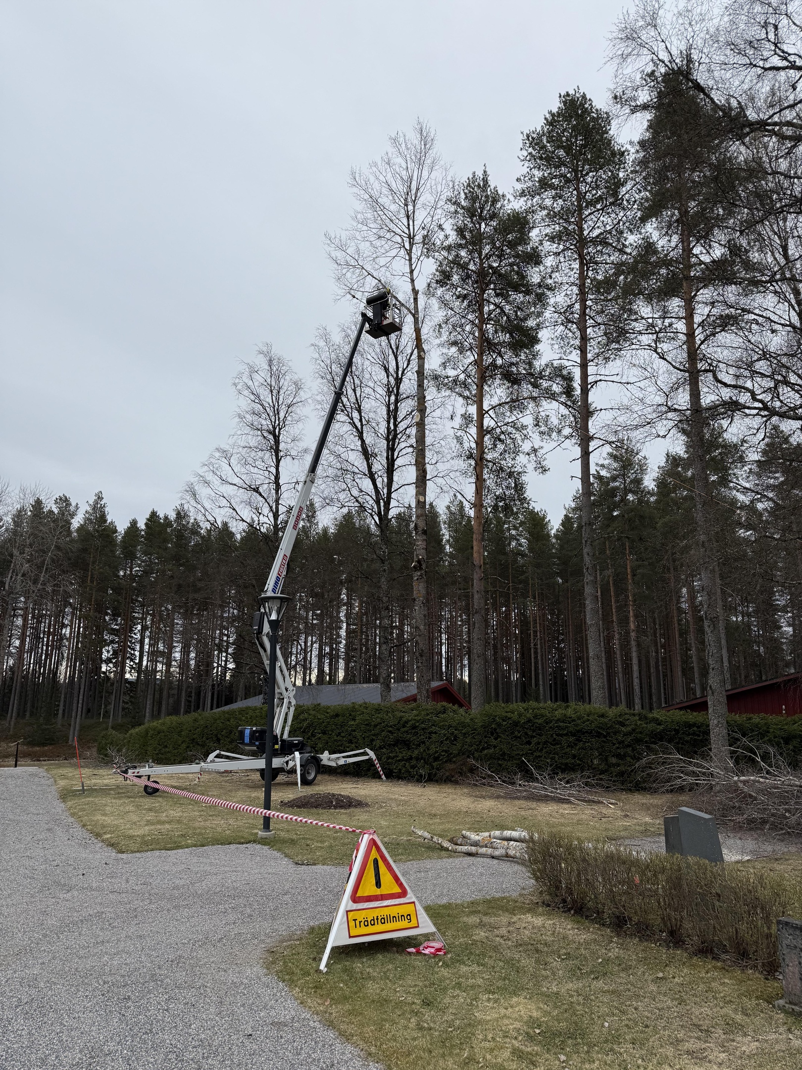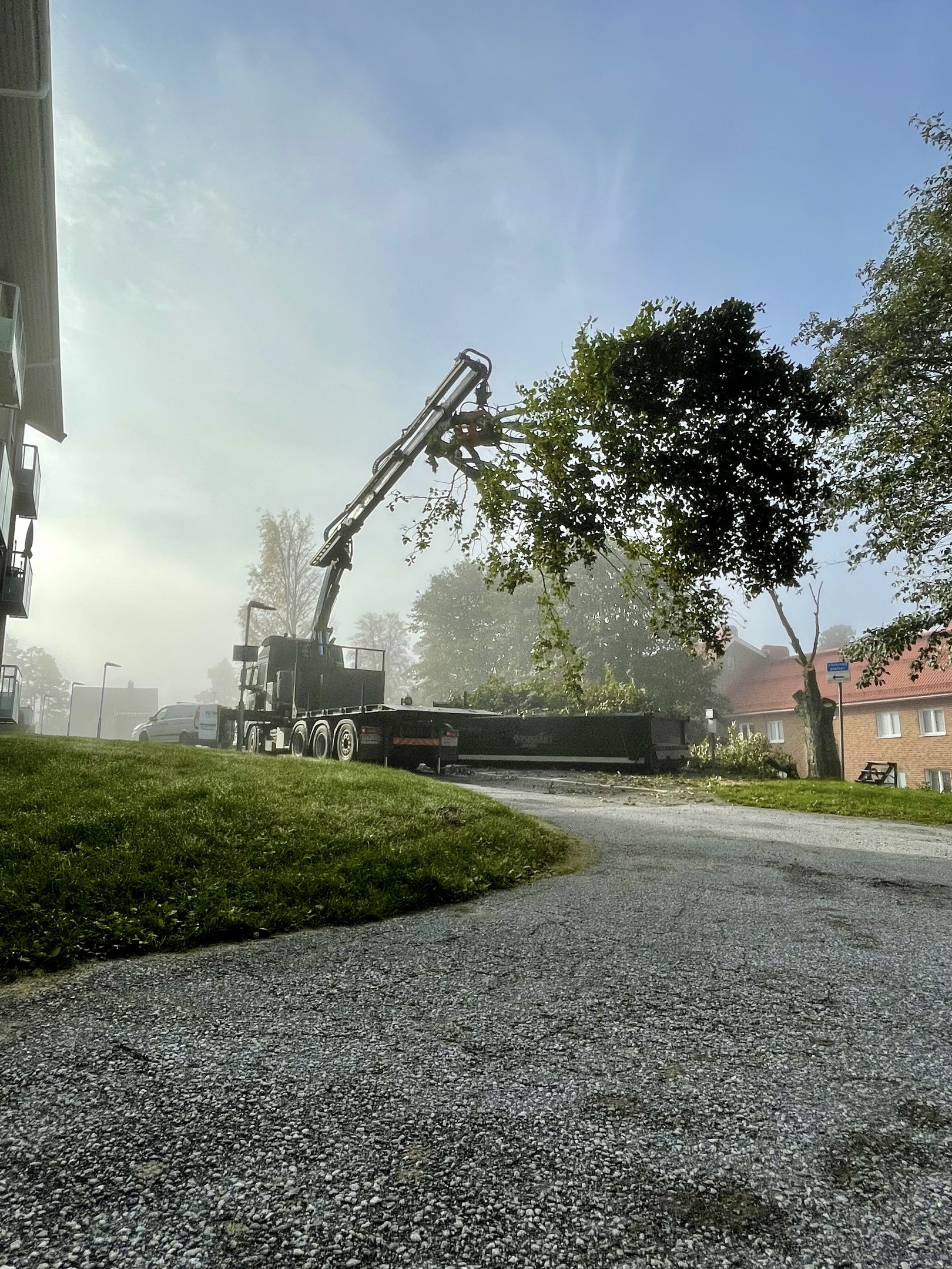 Vi hanterar allt från planering till bortforsling och städning. Våra arborister använder rätt teknik och utrustning för att fälla träden på ett säkert sätt, oavsett platsens förutsättningar.