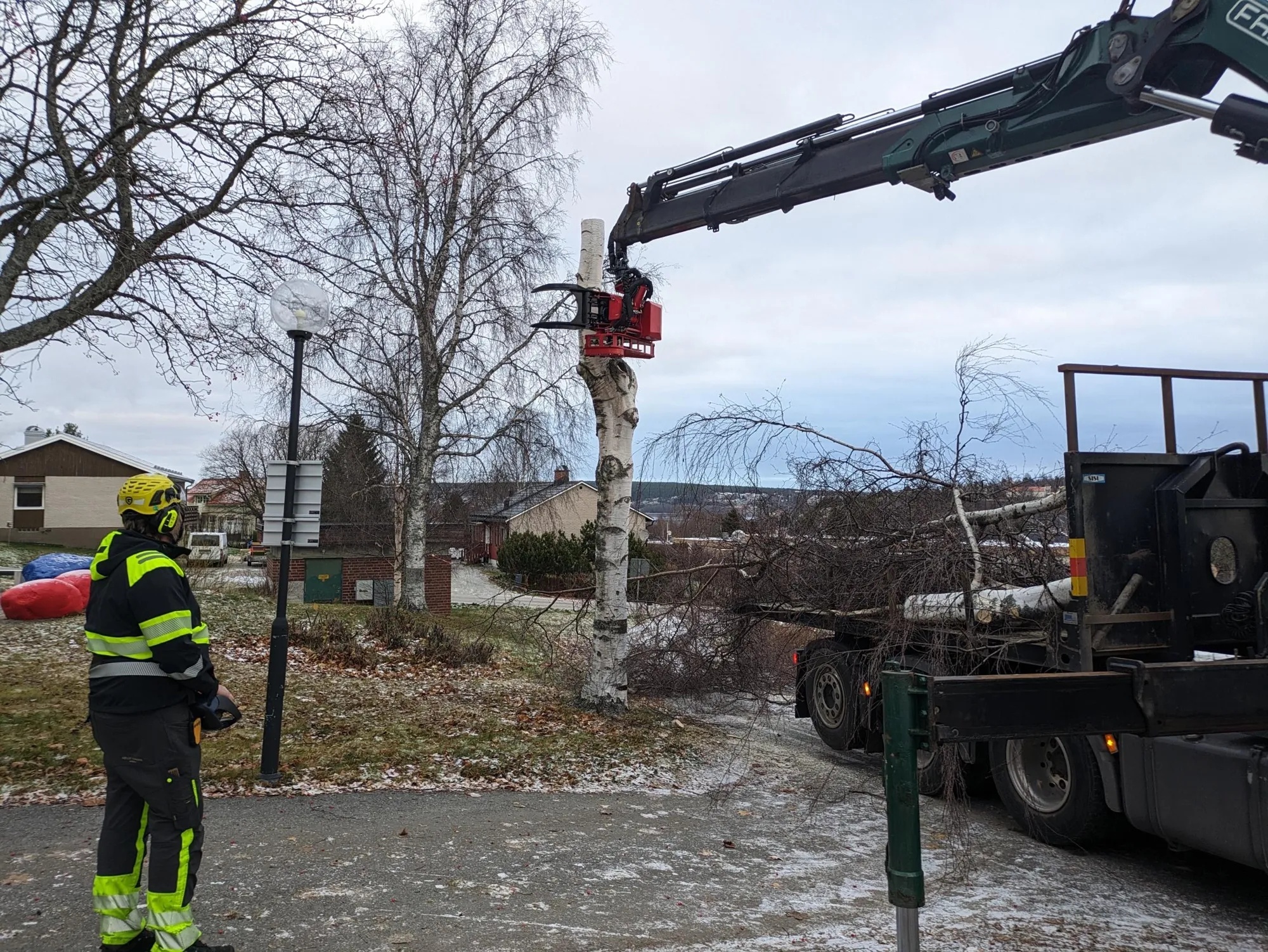 Vi hanterar allt från planering till bortforsling och städning. Våra arborister använder rätt teknik och utrustning för att fälla träden på ett säkert sätt, oavsett platsens förutsättningar.
